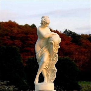 Figura Złotowłosa Otulona Szatą to wyjątkowa dekoracja, która wnosi do każdego ogrodu atmosferę subtelnej elegancji i klasycznego piękna. Przedstawia półnagą młodą kobietę o idealnych proporcjach, delikatnie otuloną szatą, co podkreśla jej wytworność i delikatność. Staranność wykonania, widoczna w każdym detalu figury, czyni tę figure wyjątkową ozdobą, przyciągającą uwagę i zachwycającą swoją artystyczną formą.