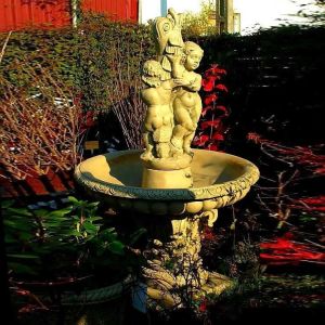 Fontanna Cortegana to wyjątkowy element dekoracyjny, który wnosi klasyczną elegancję i niepowtarzalny charakter do każdego ogrodu lub przestrzeni publicznej. Jej imponująca konstrukcja o wysokości 171 cm składa się z solidnej podstawy, bogato zdobionej misy oraz figury kobiety trzymającej dwa dzbanki. Woda wypływająca z dzbanków tworzy subtelną kaskadę, nadając przestrzeni wokół relaksującego, spokojnego klimatu.
