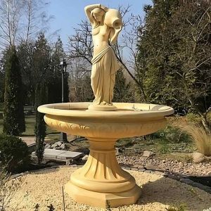 Prezentowany model wyróżnia się swoją monumentalną konstrukcją – ma aż 280 cm wysokości i 150 cm średnicy największej misy, co czyni ją jednym z najbardziej imponujących elementów architektury wodnej. Taka skala sprawia, że Fontanna Duża jest idealna nie tylko do przestronnych ogrodów, ale również do obiektów usługowych, takich jak eleganckie sale bankietowe, wykwintne restauracje czy parki miejskie. W takich miejscach fontanna staje się nie tylko dekoracją, ale także symbolem prestiżu i klasy, przyciągając wzrok gości oraz nadając przestrzeni unikalny charakter.