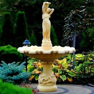 Fontanna ogrodowa ELENA Carello to wyjątkowy element dekoracyjny, który zachwyca swoją oryginalną formą i detalami. Centralnym punktem tej fontanny jest piękna figurka amorka unoszącego róg, z którego delikatnie wypływa woda, spływając do misternie zaprojektowanej misy o pofalowanych brzegach. Amorek z rogiem symbolizuje harmonię i wdzięk, co czyni fontannę idealnym wyborem dla osób poszukujących romantycznych akcentów w swoim ogrodzie.