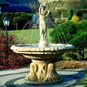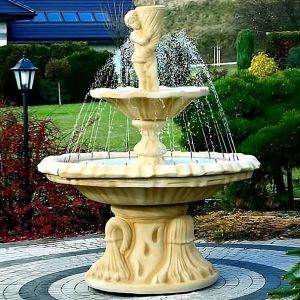 Fontanna Ogrodowa ITALIA z Gołąbkami to elegancka ozdoba ogrodowa, która z pewnością stanie się centralnym punktem każdej przestrzeni zielonej. Jej wysokość wynosi 190 cm, co sprawia, że jest imponującym elementem dekoracyjnym. W górnej części fontanny znajduje się figura dwóch gołąbków, spomiędzy których wypływa woda, tworząc malowniczą kaskadę, która wypełnia ogród relaksującym szumem. Woda spływa z trzech talerzy o różnych średnicach, tworząc efektowną kaskadę, która przyciąga wzrok i dodaje przestrzeni elegancji. Fontanna staje się więc nie tylko elementem dekoracyjnym, ale także sprzyja stworzeniu spokojnej atmosfery w ogrodzie.