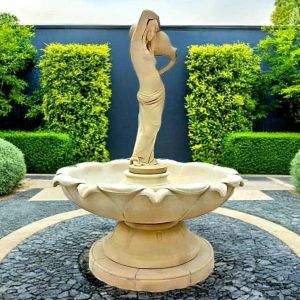 Centralnym punktem fontanny jest figura trzymająca wazę, z której wypływa woda, tworząc subtelny, a zarazem efektowny strumień. Rzeźbiarskie detale nadają całej kompozycji artystycznego charakteru, czyniąc z fontanny Verde nie tylko praktyczny element ogrodu, ale również wyjątkowe dzieło sztuki. Precyzyjne zdobienia figury przyciągają uwagę i zachwycają każdego, kto znajdzie się w pobliżu tej wyjątkowej instalacji wodnej.