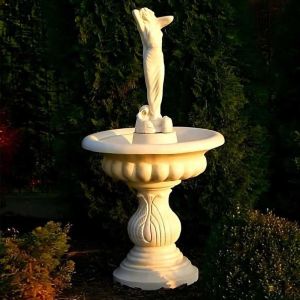 Wykonana z wysokiej klasy białego betonu, fontanna jest wyjątkowo trwała i odporna na zmienne warunki atmosferyczne, takie jak deszcz, słońce czy mróz. Dzięki temu może przez cały rok zdobić ogród, nie tracąc swojego piękna ani funkcjonalności. Wytrzymała konstrukcja sprawia, że fontanna będzie inwestycją na lata, zachowując swój estetyczny wygląd bez konieczności skomplikowanej konserwacji.